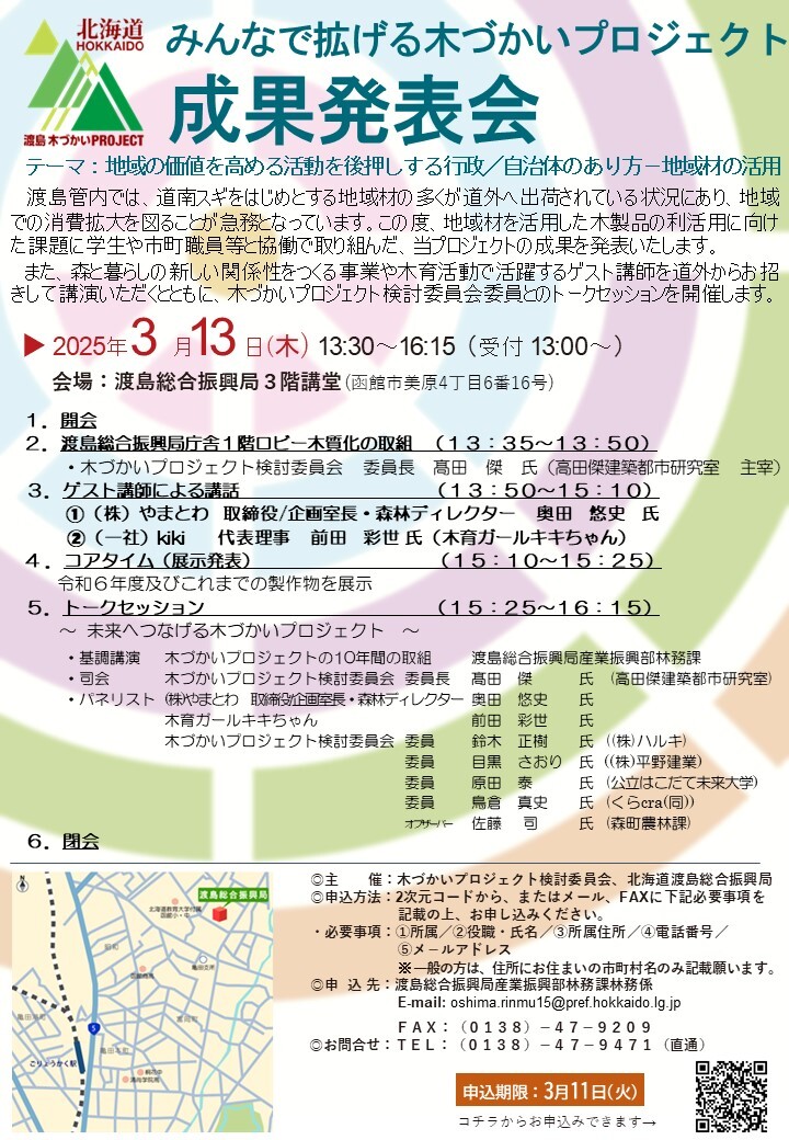 主催:みんなで拡げる木づかいプロジェクト検討委員会/渡島総合振興局林務課